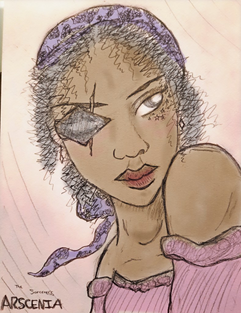 My first character profile is from a WIP story in my Afro-Multiverse called, “The Werewolf of Arscenia.” And of course, who other should we get to know than the main character, the sorcerous Lady Arscenia! I’ve decided to break up the character profile into 4 sections. Background, physicality, personality and Miscellaneous/Bonus details like her best friend or something like that. For this one, I drew Arscenia, something I had been struggling to do for a couple months.